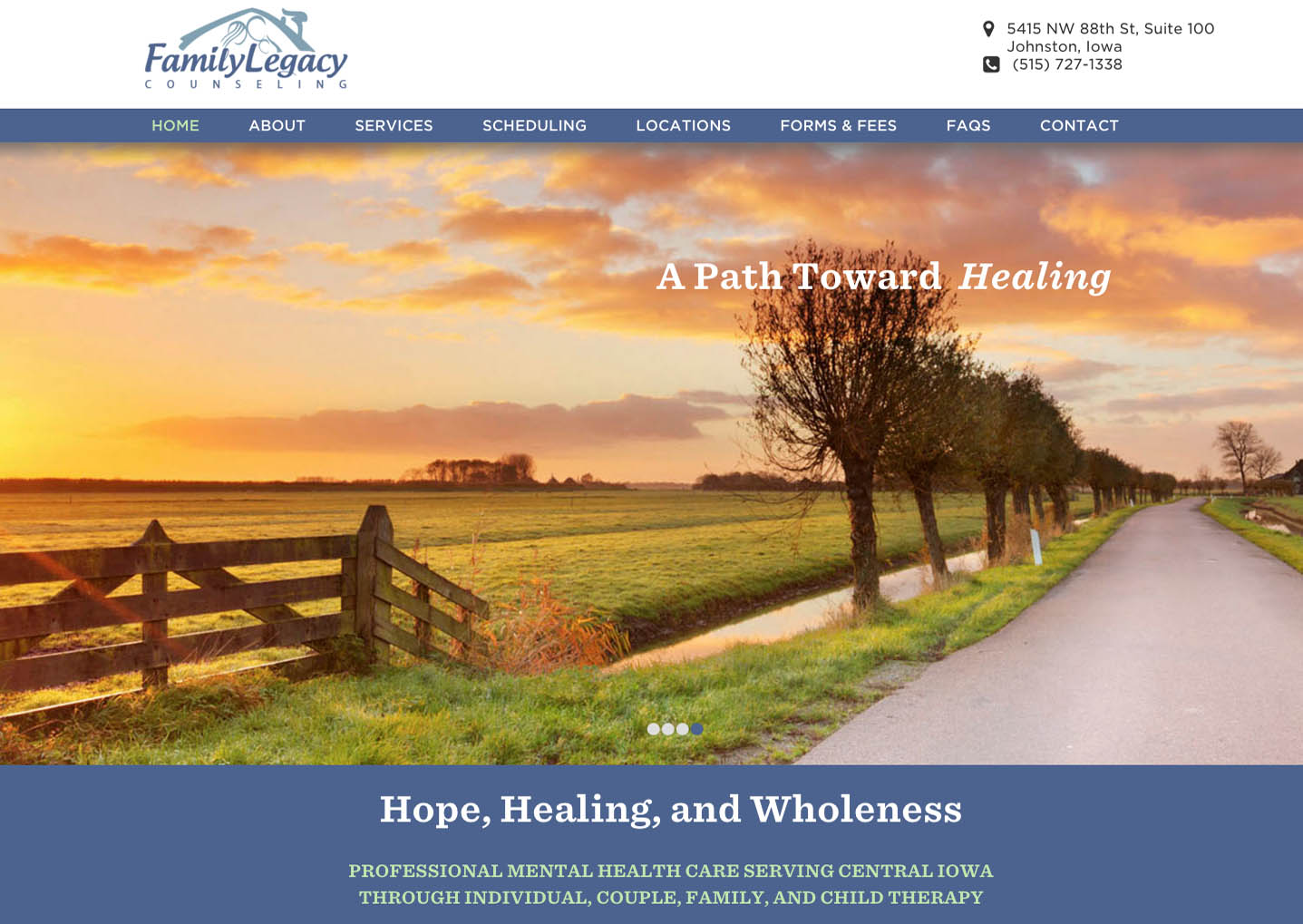 Family Legacy Counseling is a faith-based counseling business based in Johnston, Iowa. Although the existing website was reasonably well designed, it lacked web usability and resulted in poor user experience. The project scope was driven by two key factors – Exceptional user experience and clean design.
